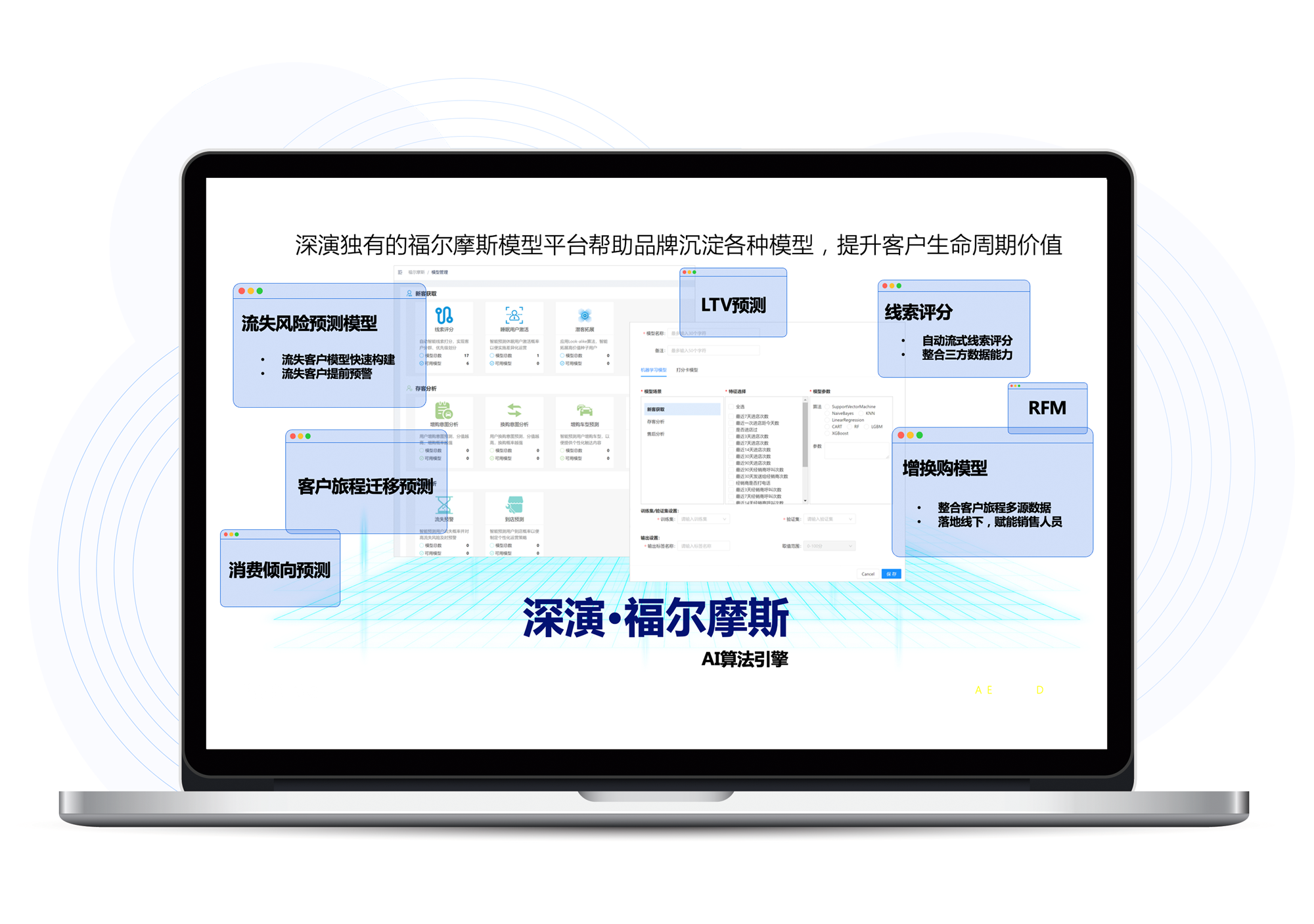 福尔摩斯AI是尊龙凯时智能自主研发的AI算法模型平台,内嵌广告和用户运营两大模型体系,为尊龙凯时智能营销决策云提供底层能力支撑,提升客户全生命周期价值
