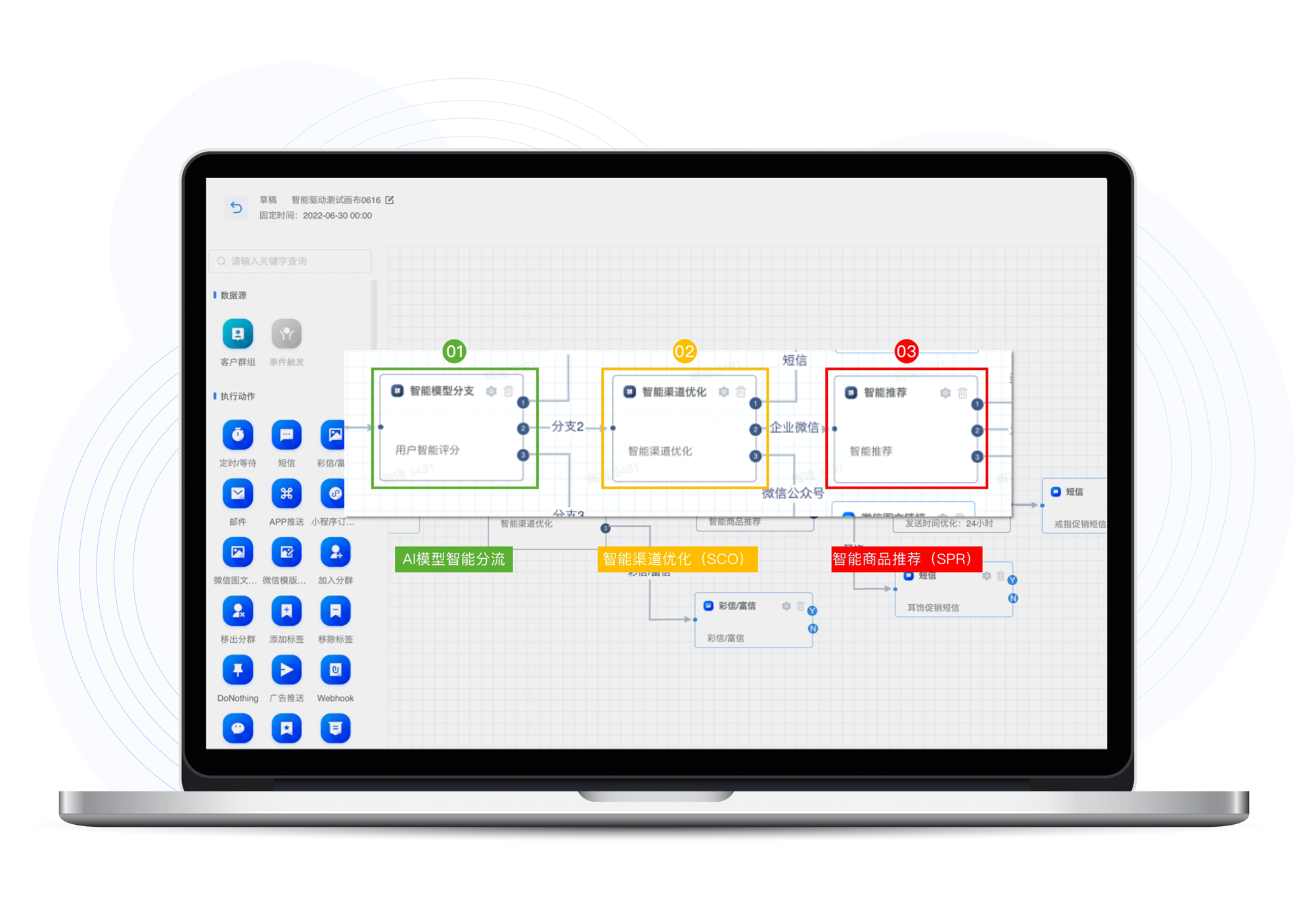 尊龙凯时智能MA拥有智能策略编排和任务自动执行能力,可以把恰当的内容在恰当的时间通过恰当的渠道触达到恰当的人群,实现“千人千面”的数智化营销,赋能生意增长